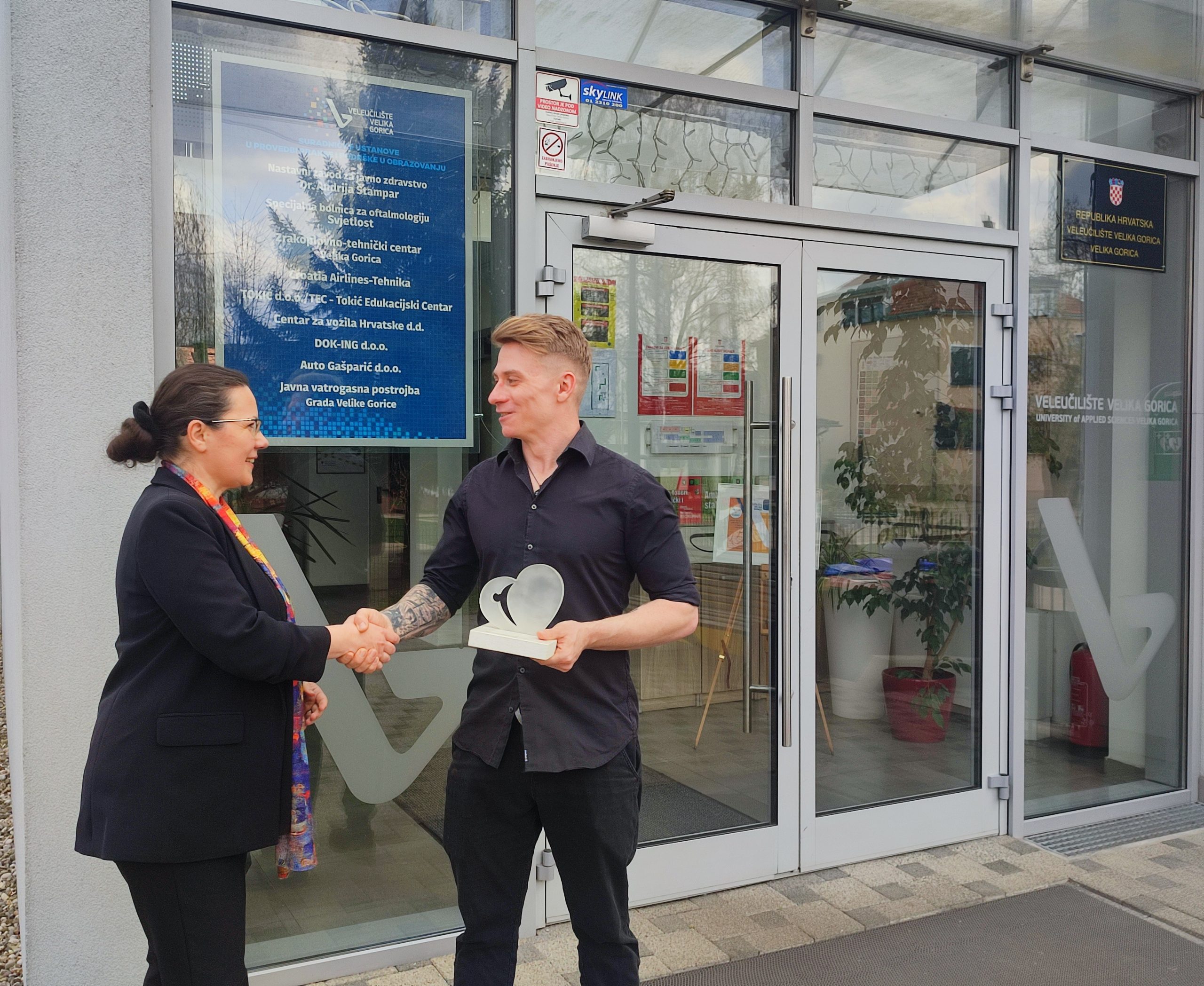 U srdačnom razgovoru s Maximilianom, dekanica je istaknula koliko smo kao ustanova ponosni na njega – mladog čovjeka koji nesebično pomaže drugima. U ime svih djelatnika, čestitala mu je na ovoj iznimno lijepoj i prestižnoj nagradi, naglasivši kako je svojim djelovanjem postao i ponos Veleučilišta Velika Gorica.