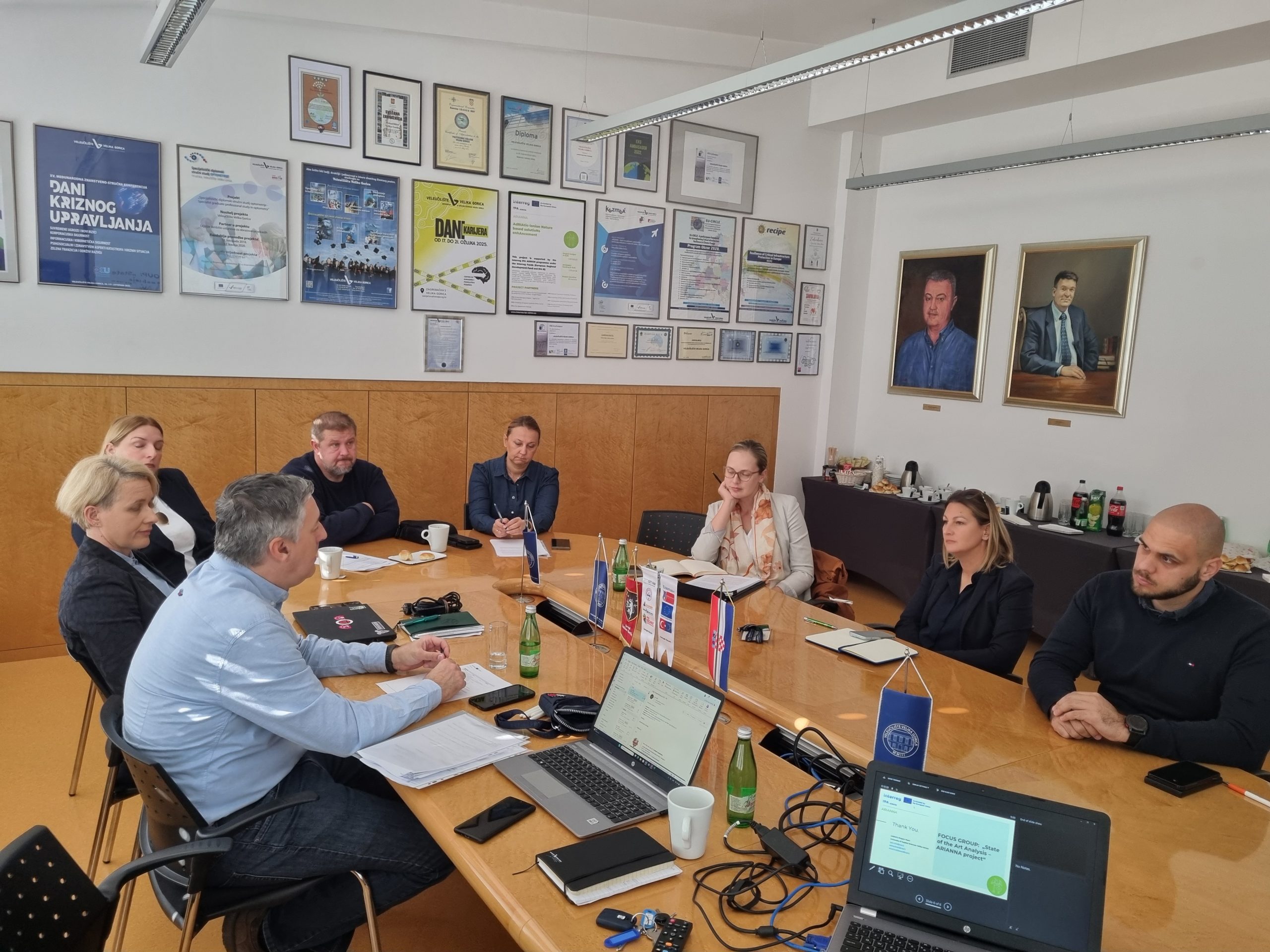 Sudionici fokus grupe bili su predstavnici institucija: Ministarstvo unutarnjih poslova – Ravnateljstvo civilne zaštite, Grad Velika Gorica; Javna vatrogasna postrojba Grada Petrinje; te Veleučilište Velika Gorica. Ključne tematske cjeline o kojima se raspravljalo: (1) lokalni klimatski rizici i utjecaji; (2) rješavanje klimatskih rizika; (3) rješenja temeljena na prirodi (NBS); (4) pripremljenost zajednice i smanjenje rizika; (5) upravljanje, politika i koordinacija; (6) budući pogled i potrebe. Ispred Veleučilišta nazočni su bili Igor Milić, v.pred.mag.ing.admin.chris., Jelena Levak, mag. crim, pred., dr. sc. Nives Jovičić, v. pred. i Antonio Klobučar, mag. geogr., mag. oec.