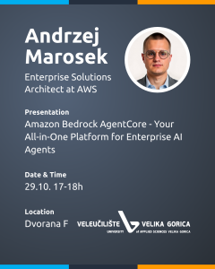 Predavanje na temu platforme za korporacijske AI agente Amazon Bedrock AgentCore održat će Andrzej Marosek iz AWS-a.