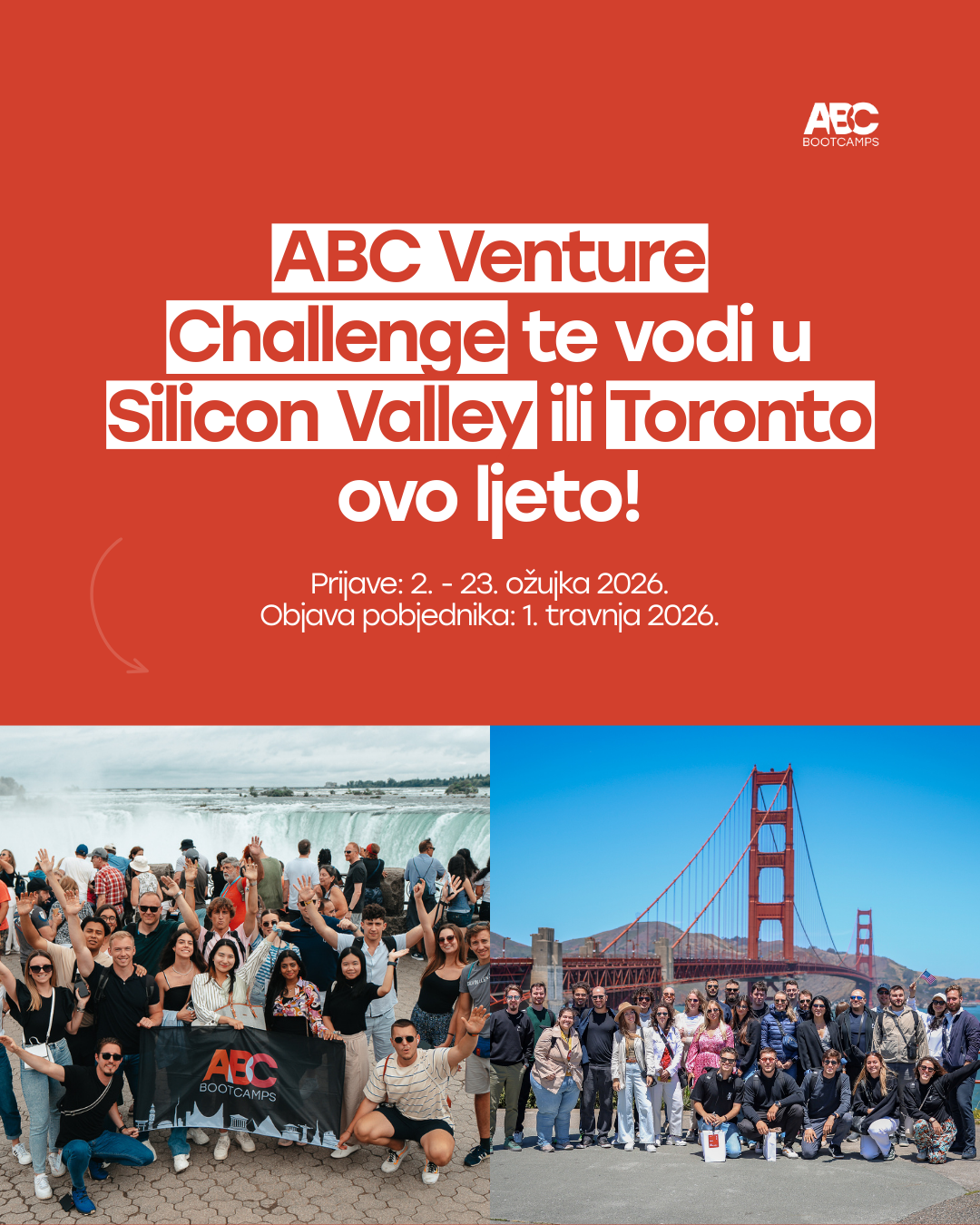 ABC BootCamps vas poziva na sudjelovanje u ABC Venture Challenge 2026 i osvojite stipendije za sudjelovanje na jednom od njihovih ljetnih programa u Kaliforniji ili Kanadi.