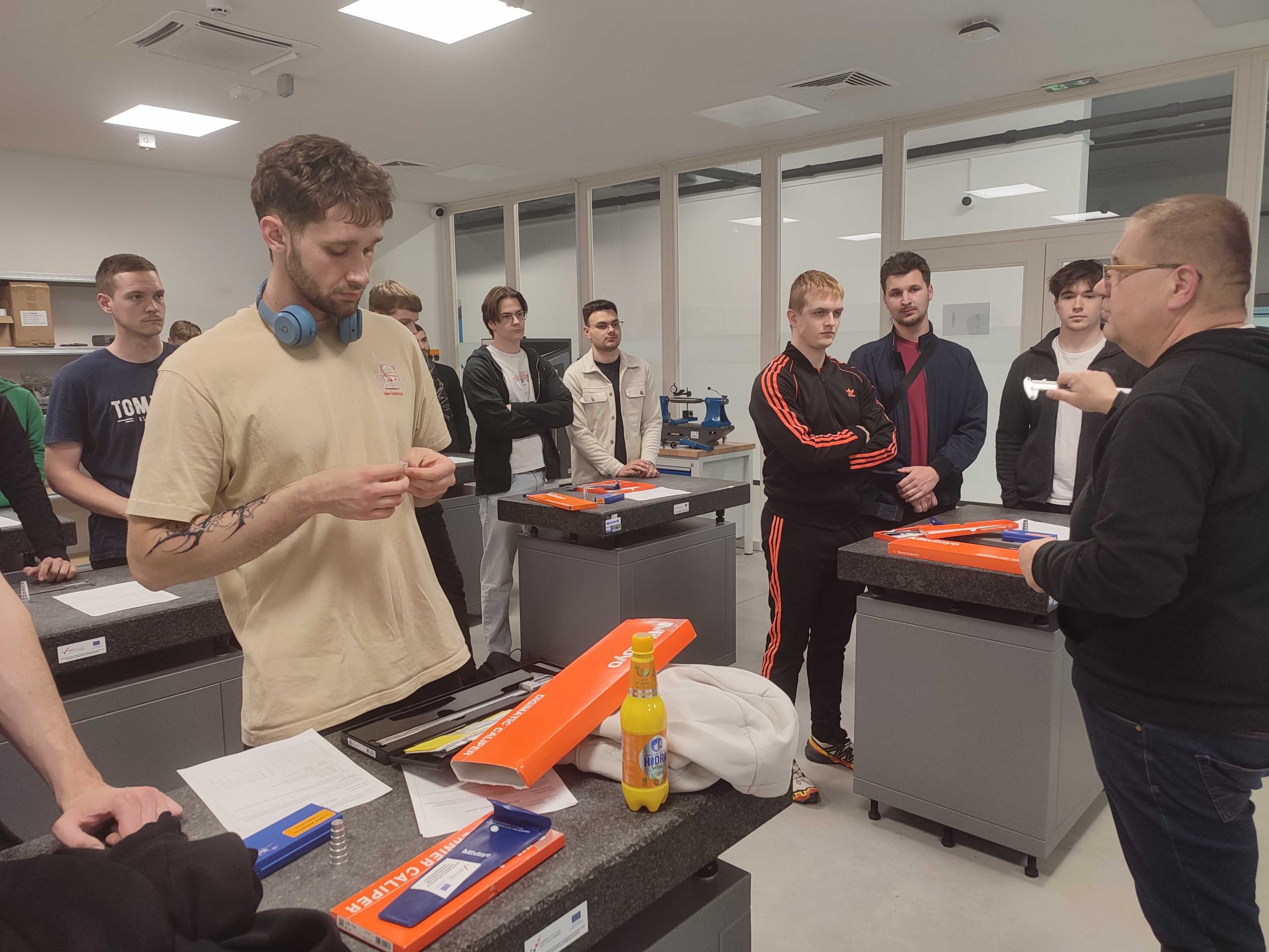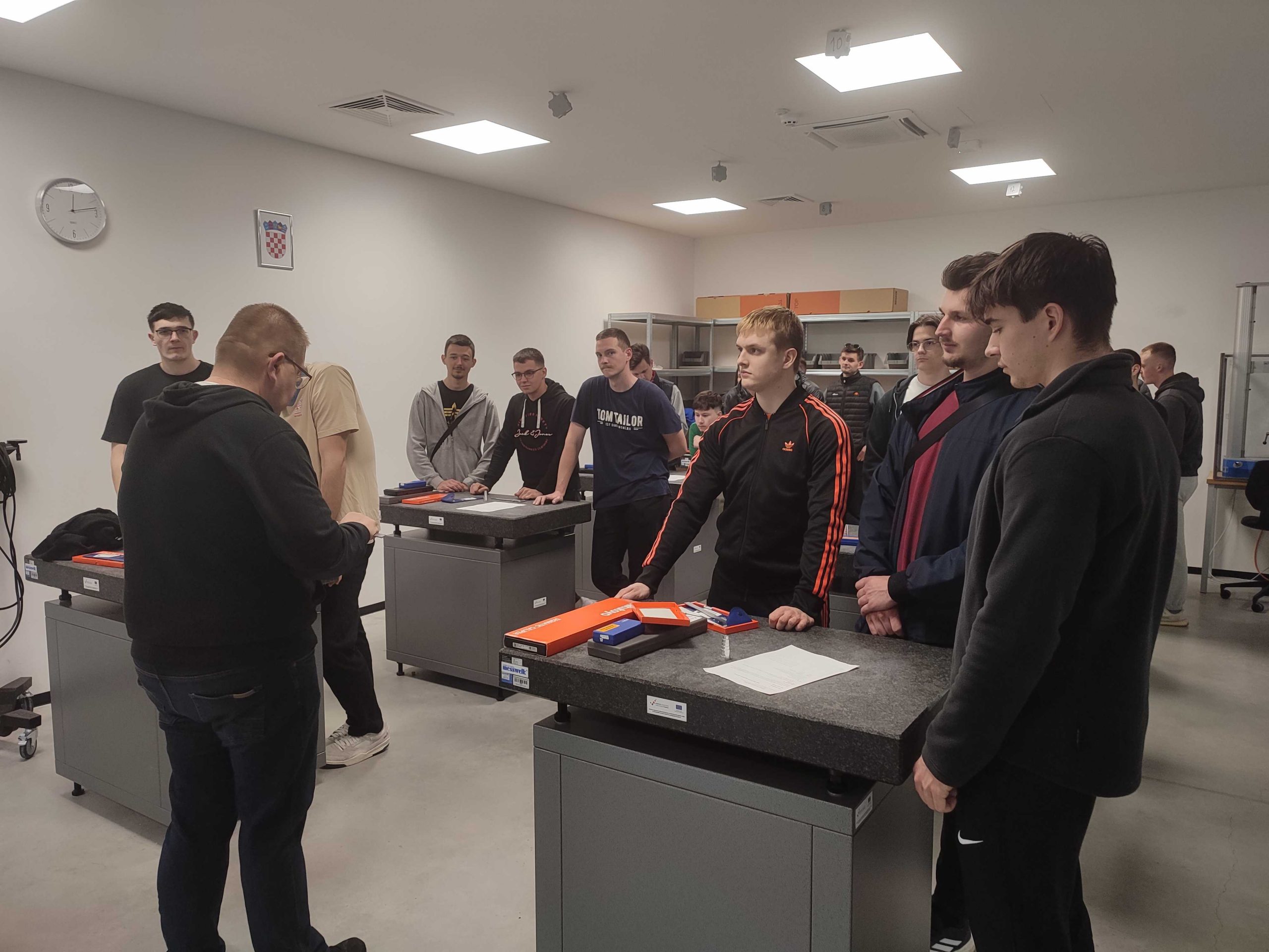 Studenti su uz interaktivnu komunikaciju praktično koristili mjerne instrumente za mjerenje duljine, s kontrolnicima kontrolirali odstupanja oblika, mjerili hrapavost površina, pratili rukovanje s 3D koordinatnim uređajem, izmjerili i nacrtali graf statičke vlačne čvrstoće materijala te ispitali tvrdoću strojnog dijela.
