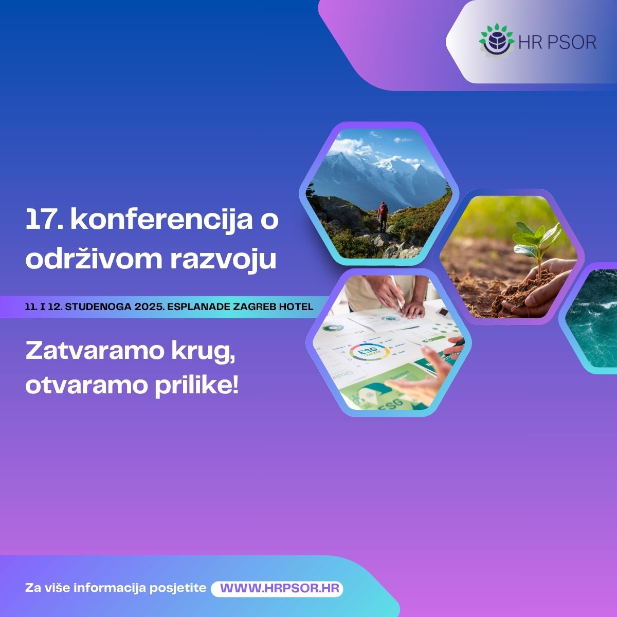 Pridružite se 11. i 12. studenoga 2025. u Esplanade Zagreb Hotelu na 17. Konferenciji o održivom razvoju koja će ponovno otvoriti ključna pitanja o tranziciji prema zelenijem i pravednijem gospodarstvu, usklađenosti s europskim standardima te ulozi inovacija u postizanju održivosti.
